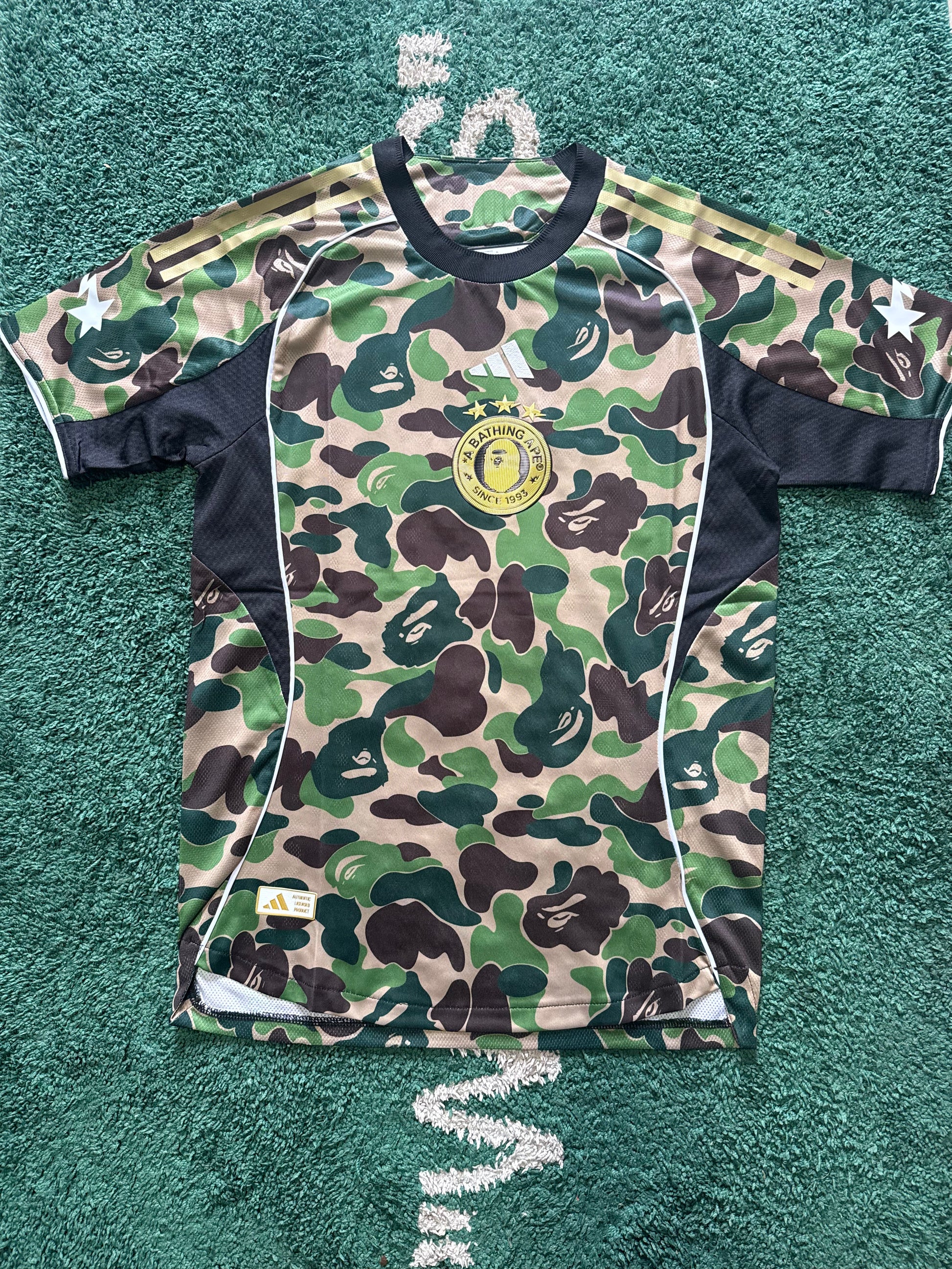 Designed with lightweight, breathable fabric, it offers all-day comfort whether you’re on the pitch or in the streets. adidas performance detailing meets BAPE’s unmistakable aesthetic, creating a statement piece that blends sport, culture, and style in one clean silhouette.